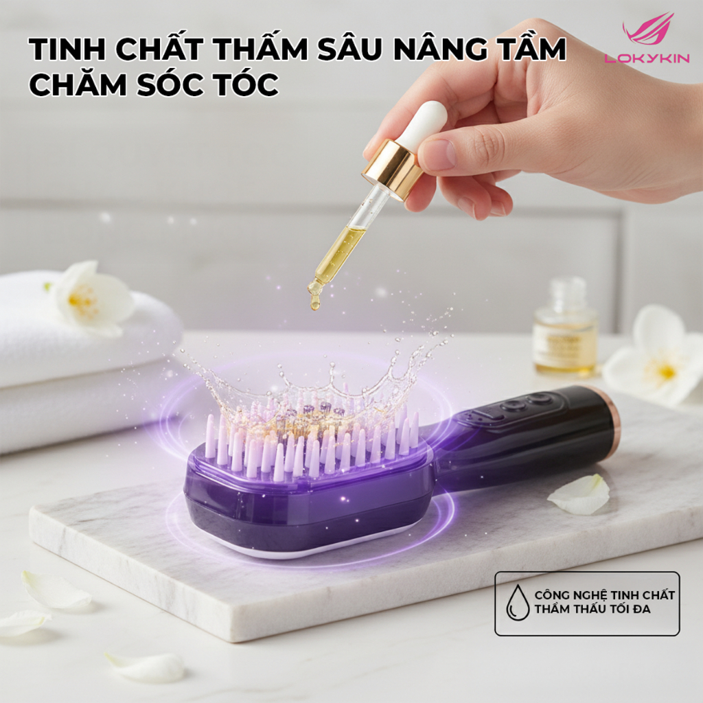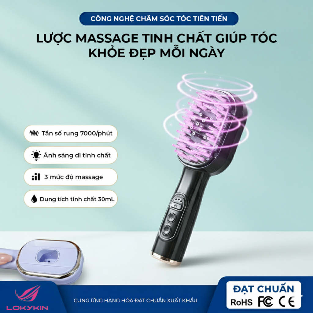 Lược điện không dây ion âm LOKYKIN LK01 – Chăm sóc tóc suôn mượt, tạo kiểu – Tặng dock sạc không dây