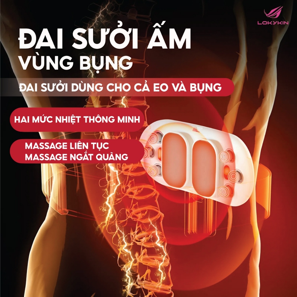 Lokykin BU01 là đai chườm nóng thông minh, tích hợp 3 công nghệ hiện đại: chườm nóng Graphene kép, massage rung đa điểm, và ánh sáng đỏ 660nm hỗ trợ làm mờ rạn da sau sinh. Thiết bị không dây, nhỏ gọn và an toàn – là lựa chọn lý tưởng để xoa dịu cơn đau bụng kinh, đồng thời nâng niu cơ thể và cảm xúc phụ nữ mỗi ngày.