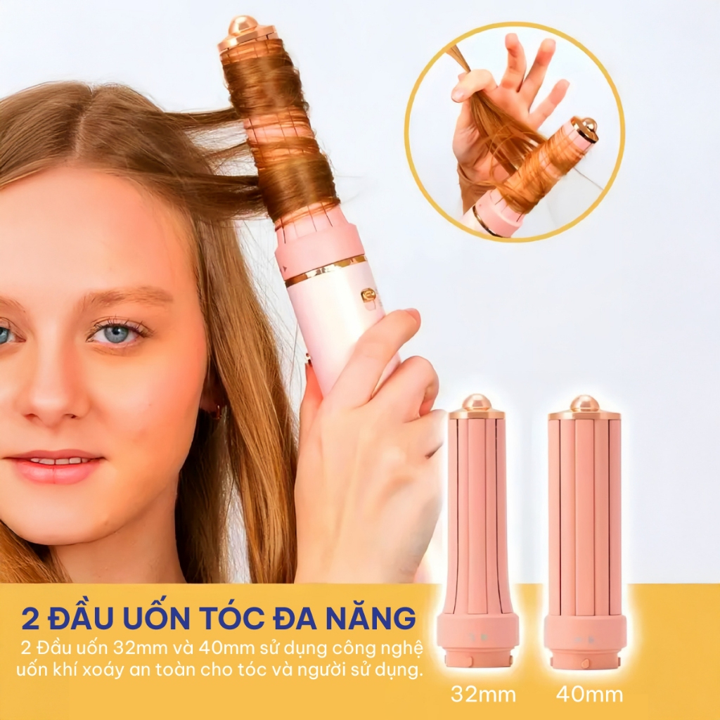 * Uốn xoăn tự động: Đầu uốn 30mm tạo lọn xoăn mềm mại, xoăn trái/phải linh hoạt.