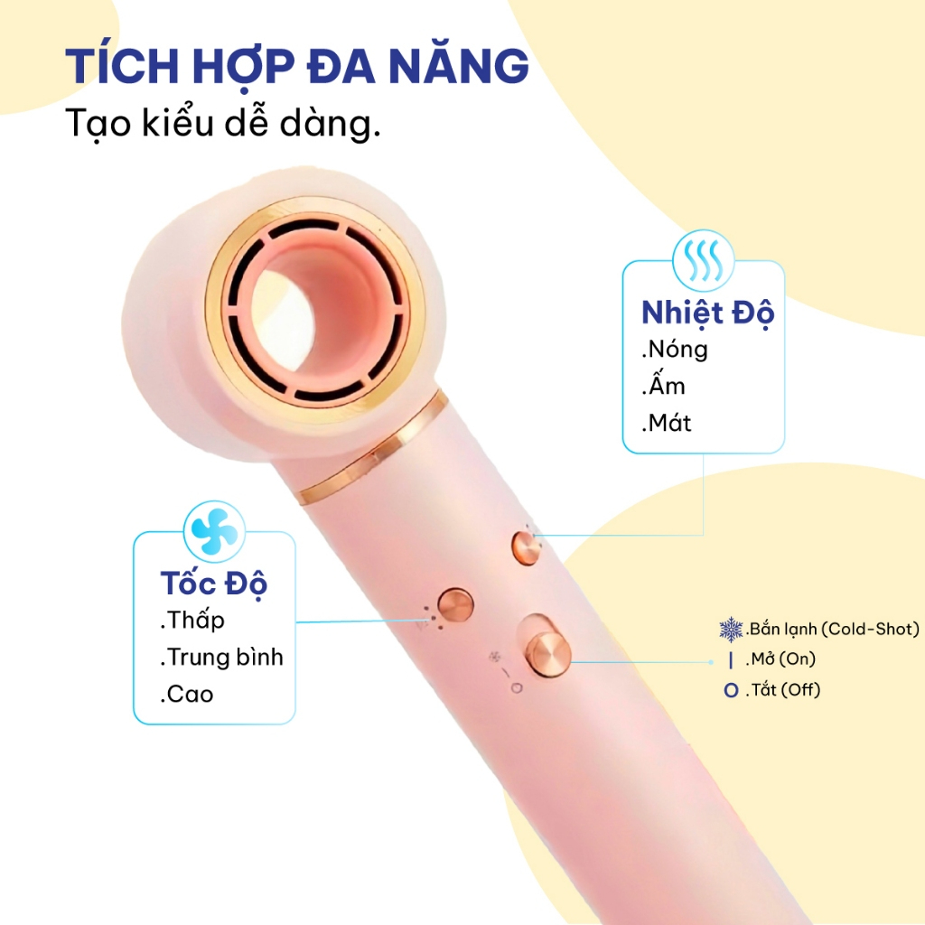 * 3 chế độ nhiệt, 2 tốc độ gió: Tùy chỉnh linh hoạt cho mọi loại tóc (tóc mỏng, tóc dày, tóc hư tổn).
